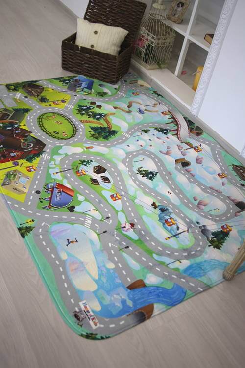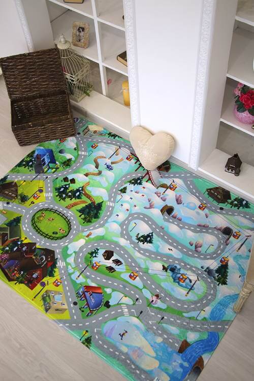 Украсьте интерьер современным ковром Детский развивающий 3D ковер с дорогами Сказочная Зимняя Ферма 86032!