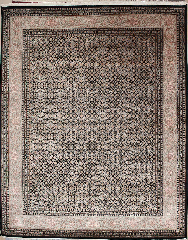 Украсьте дом современным ковром Индия шерсть шелк 14x14 HERALI BLACK / IVORY!